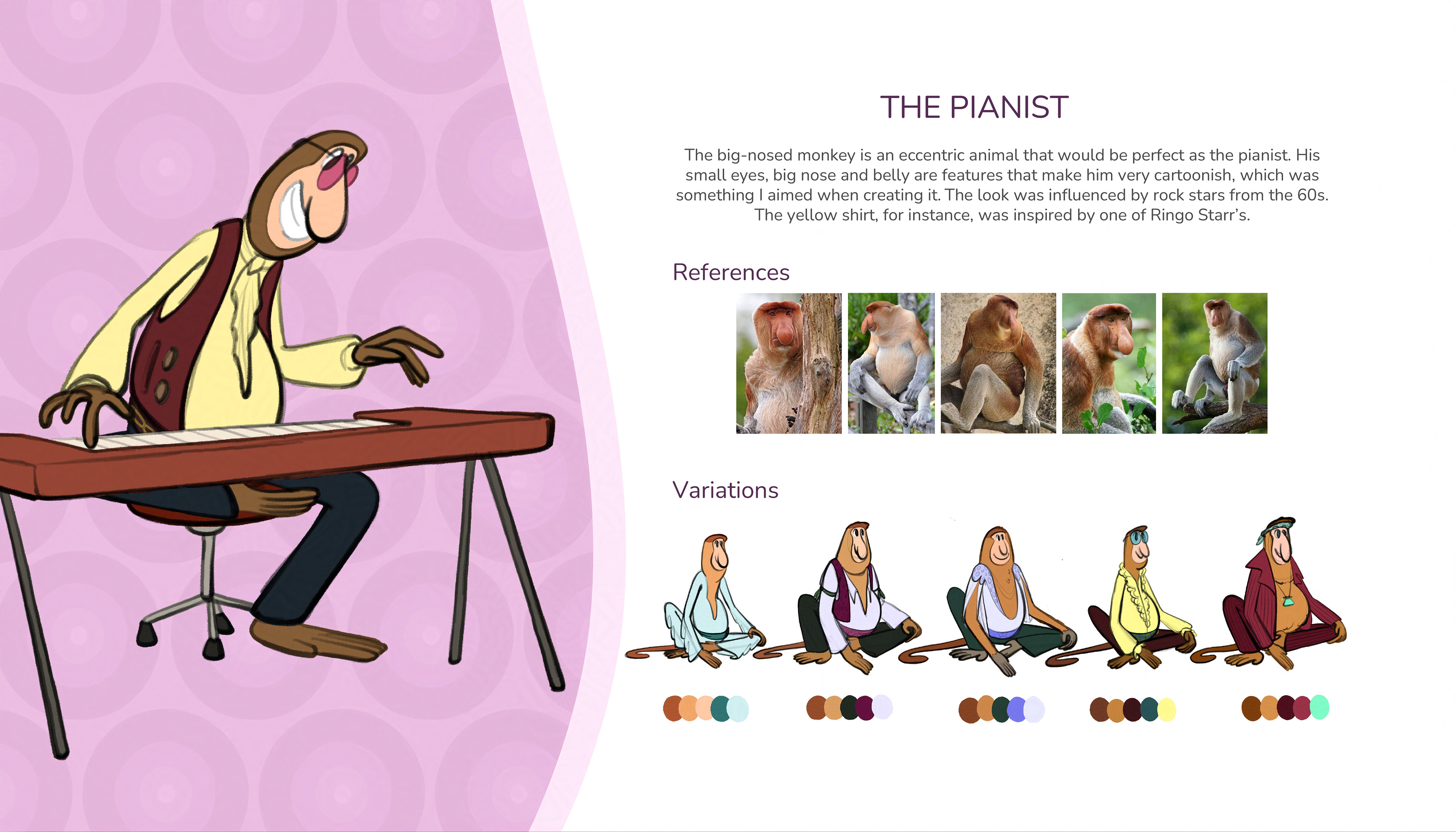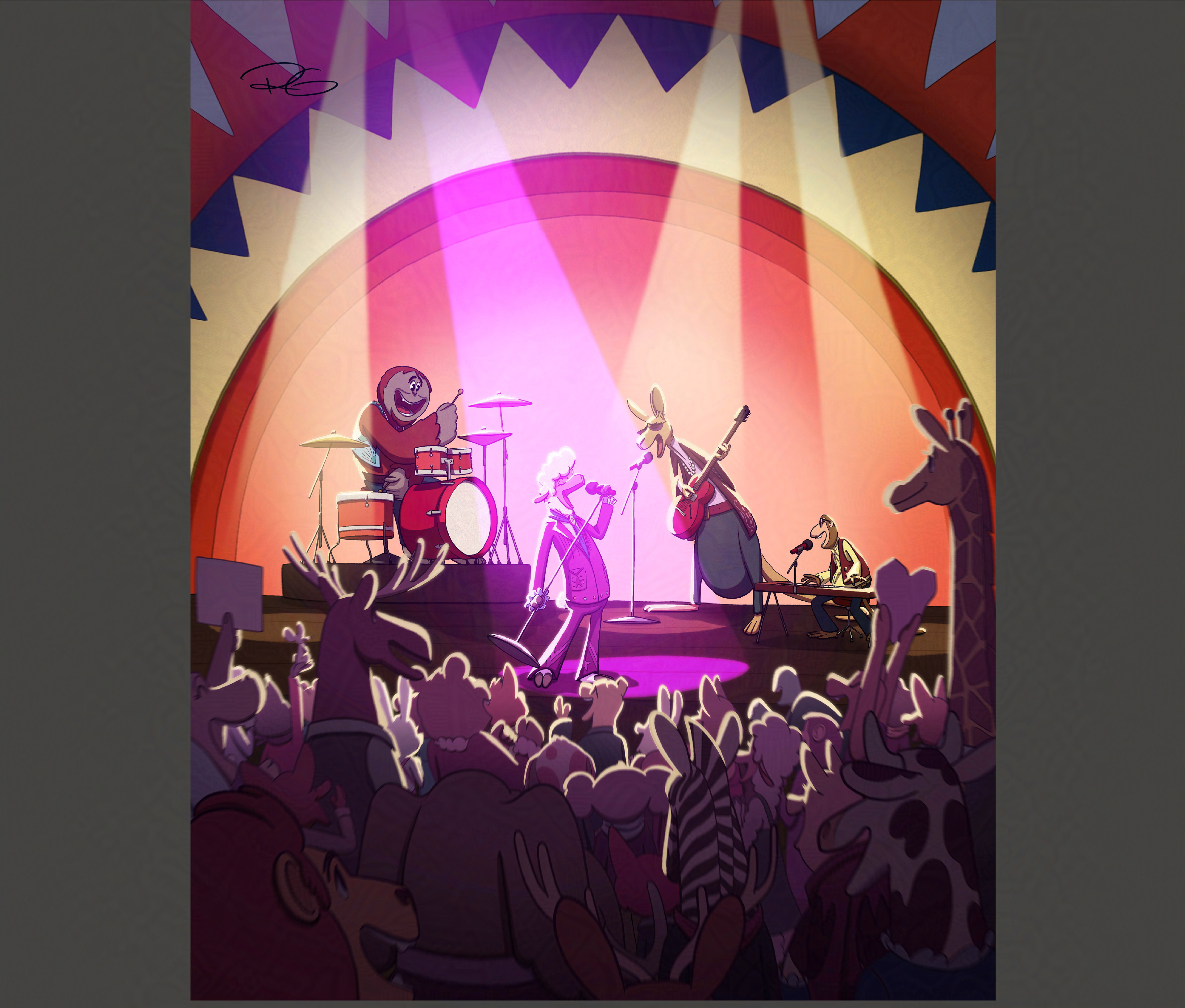 Wild Band is a personal Character Design and Visual Development project, the aim was to make a 60s/70s band with anthropomorphic animals. I wanted to develop strong, charismatic characters that formed a diverse and harmonious group.